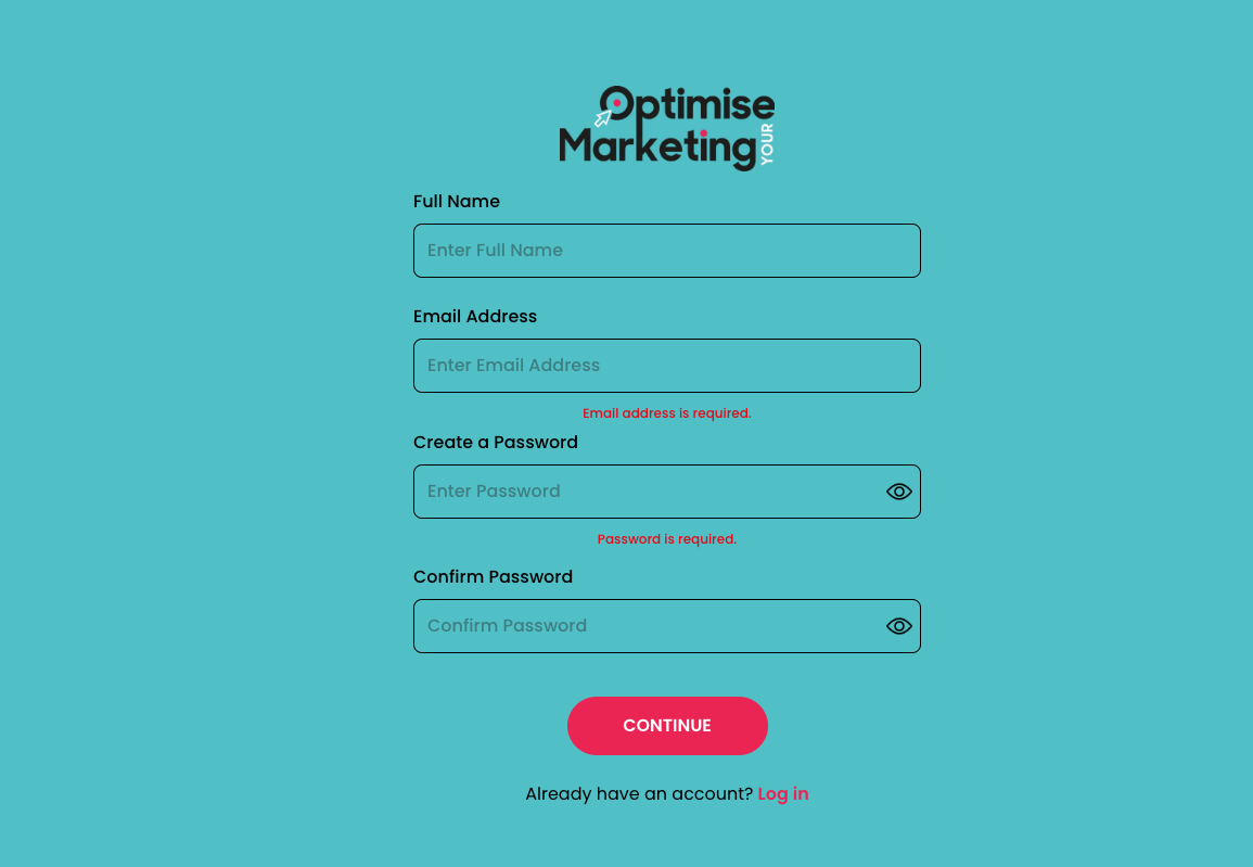 To Sign up to our Online Marketing Tool you can Visit https://app.optimiseyourmarketing.co.uk/login at anytime to access the sign up page to our Online Marketing Tool. Please use the ‘SignUp’ button under the Log In button to set up your account.