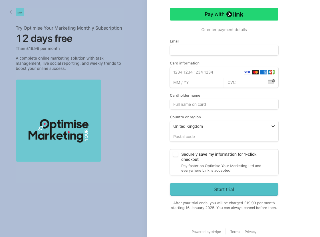 The tool will then ask you to complete the payment subscription which can be cancelled at anytime. You won’t be charged until day 13 and then it’s a monthly fee of just £19.99 per month after that. This gives you full access to: -